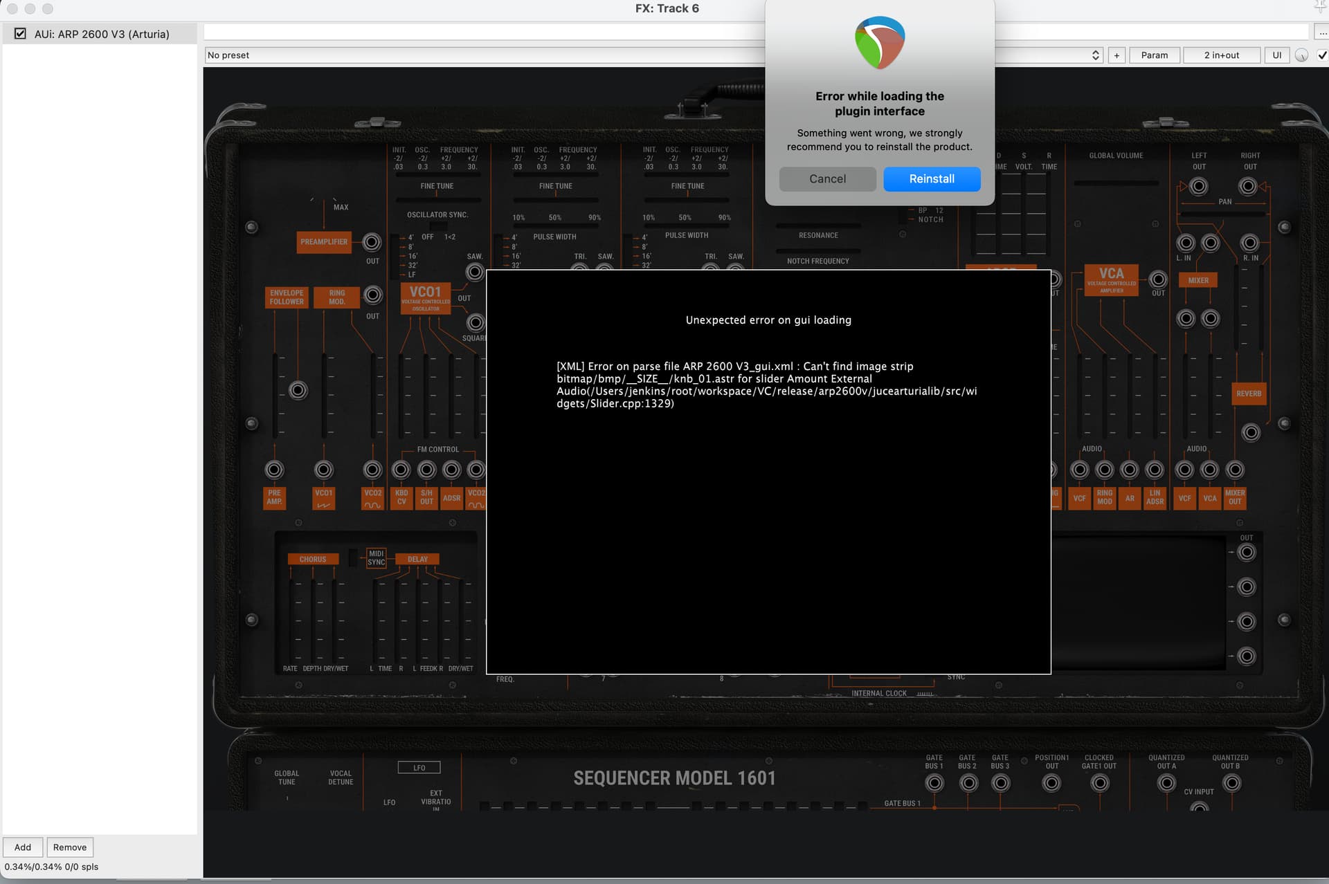 I am running on MacOS Sequoia 15.6.1, some instruments in V Collection 9 give me this error when trying to open in Reaper. I get errors loading ARP 2600, Mellotron, Synclavier, Modular V3. Others are fine, such as Jun-6 V, Piano V3, Mini V3.