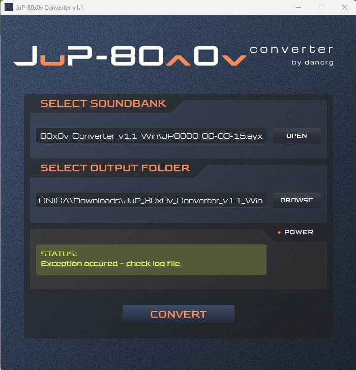 @DanCrg Hi Dan, I am trying to use your converter but I am getting the Exception occurred error. It is from a Syx file I created from my JP8000 in 2015. As I still have my JP8000, I could do the backup again if you think that is the problem. Here’s the text from the log file. I hope you can help, thanks.