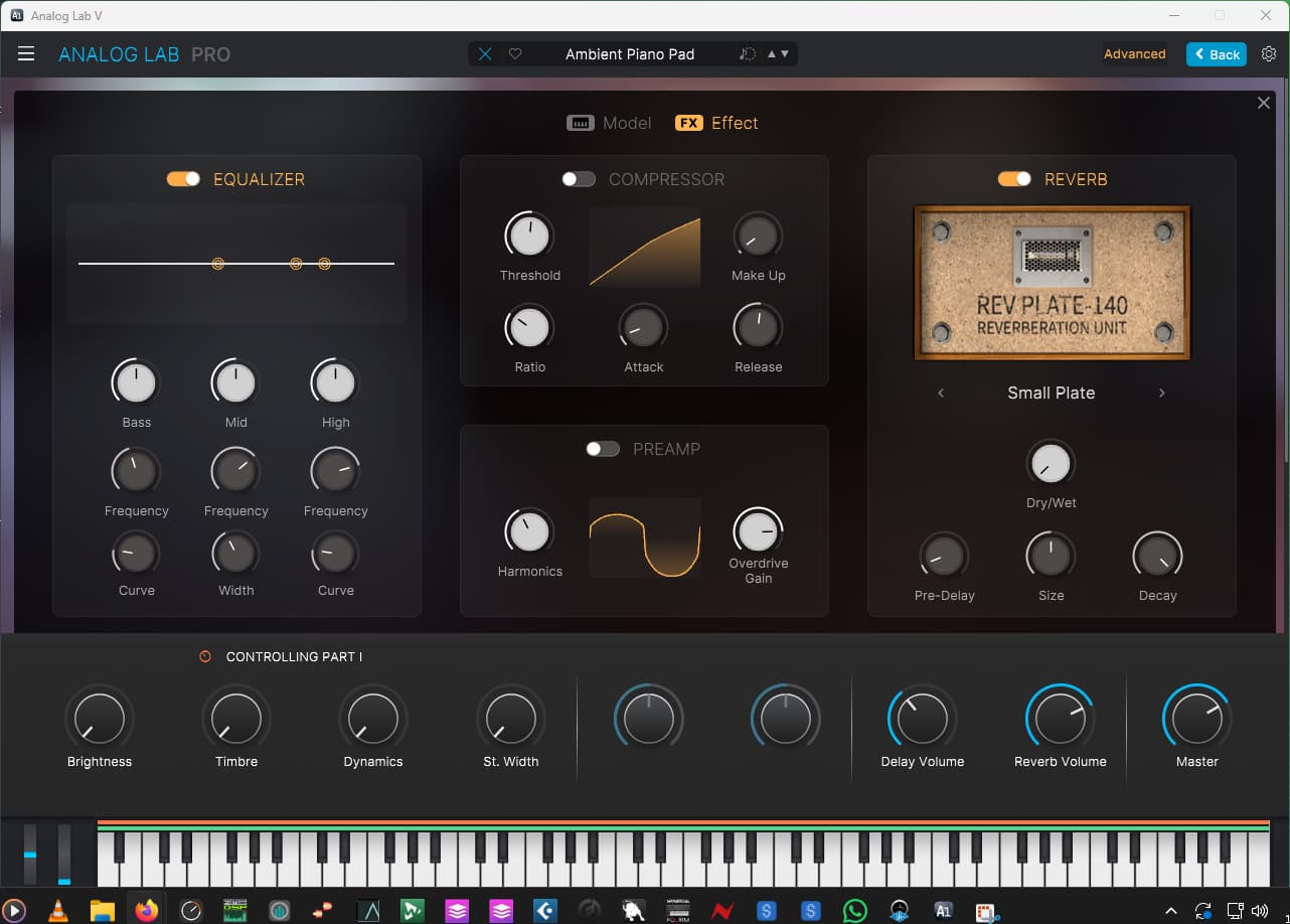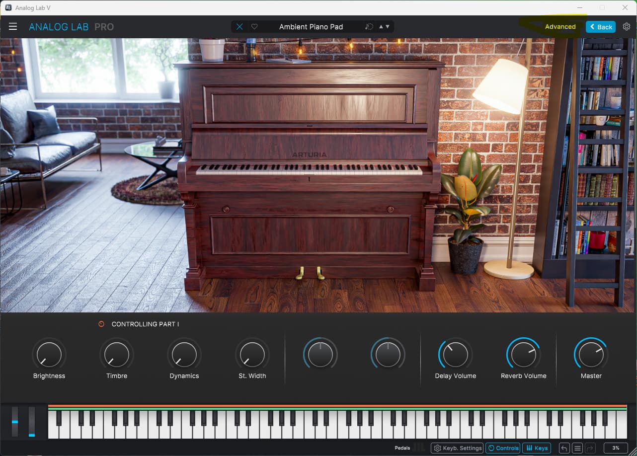 click on 'advanced in the upper right hand corner and you’ll see the pic after where you’ll be able to alter settings for that instrument, you’ll be able to do the same for the Synclavier V on the corresponding page.