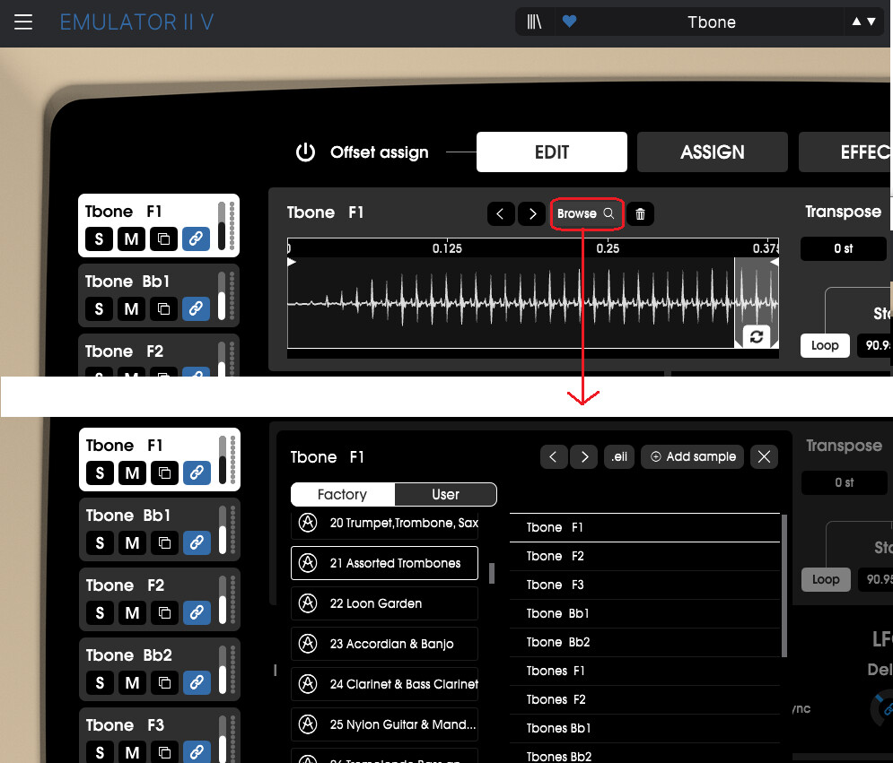 ok, well I can see and edit the various factory sounds in the Emulator II instruent but can’t see any intuitive way to actually get the new sound exposed to AnalogLab as a usable preset.